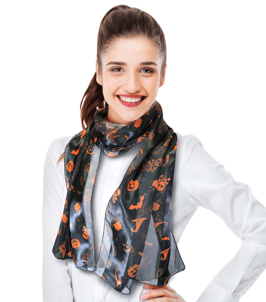 Halloween Themed Scarves - Add a touch of spook to your black outfit with fashionable Halloween Themed scarves. If you don’t want to wear a costume but want to celebrate Halloween, fashion scarves are a great option!
